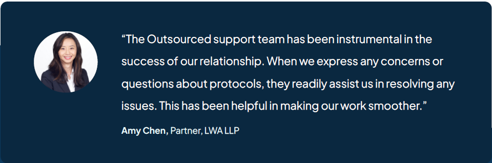 “In order to grow, we needed to find candidates with a balanced work ethic and technical knowledge,” says Amy Chen, Partner at LWA. “Outsourced has been very diligent in conducting background checks to ensure we find coworkers who can further our firm’s growth.”